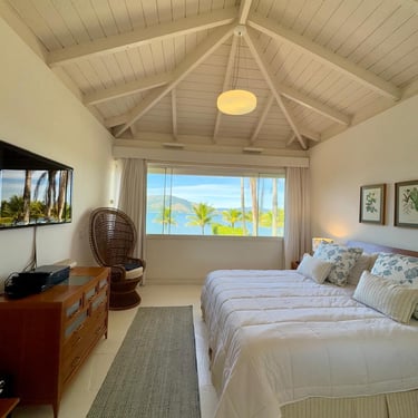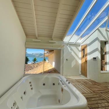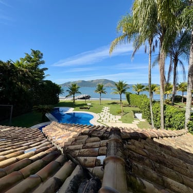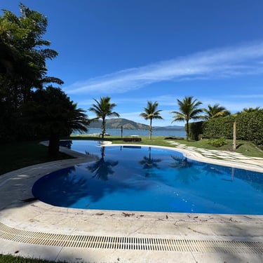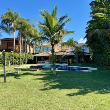Descubra um refúgio exclusivo no Condomínio Portobello, onde luxo e natureza se encontram. Esta casa ao pé da areia oferece uma piscina sinuosa cercada por palmeiras, deck com jacuzzi e vistas deslumbrantes do mar e montanhas.
