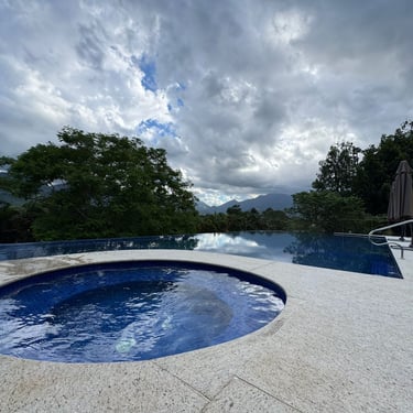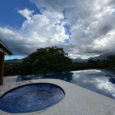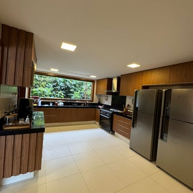 Situada na parte do sítio, essa residência oferece uma piscina cinematográfica com borda infinita, sauna, jacuzzi, 6 suítes, sala em dois ambientes, sala de TV, e dependência completa. Aqui você encontrará uma das residências mais espaçosas e modernas do condomínio.