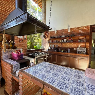 Casa rústica, com muita área verde situada na parte do sítio. Essa residência oferece deck privativo, piscina, sauna, 5 suítes, dependência completa e rampa de acesso com marina seca.