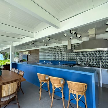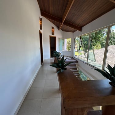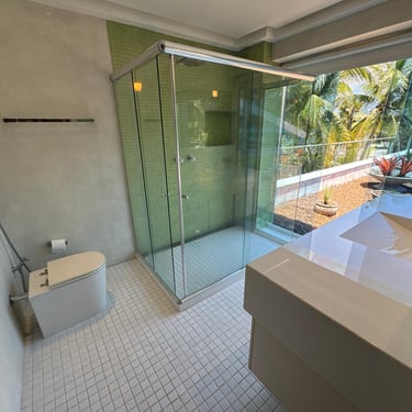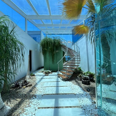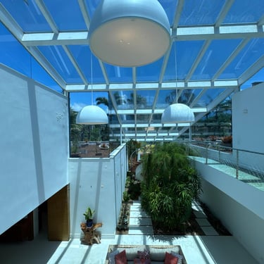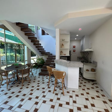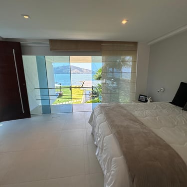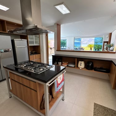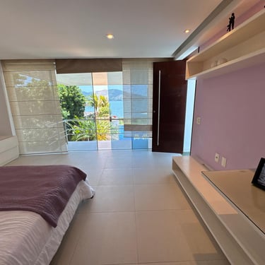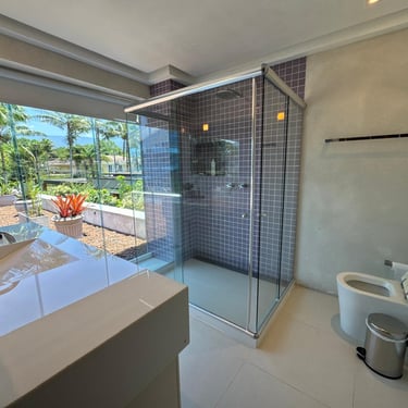 Além disso, você encontrará na casa principal: 5 suítes, cozinha americana moderna, área gourmet, sala de cinema, jardim de inverno, piscina, sauna e jacuzzi com vista mar.