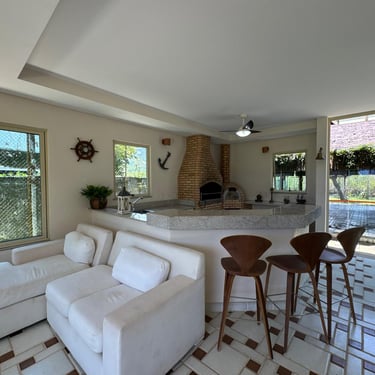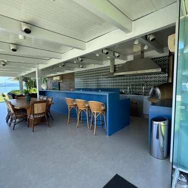 Já na casa de apoio temos: 4 suítes, cozinha, sala de TV e estar, campo de futebol, vestiários, casa de caseiro, marina seca, salão de jogos e deck privativo.