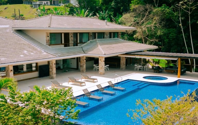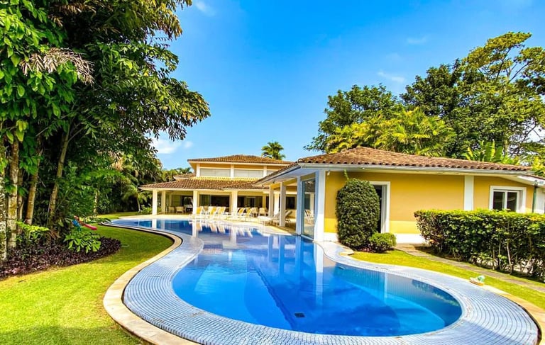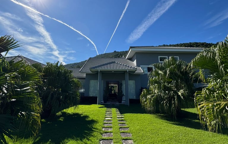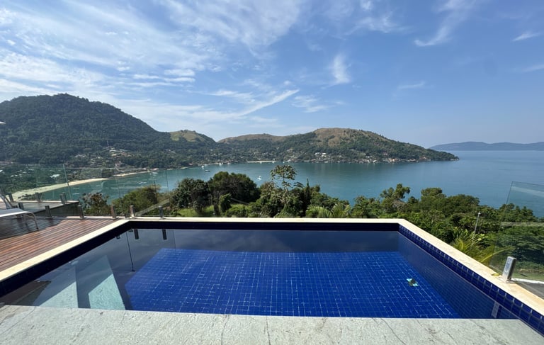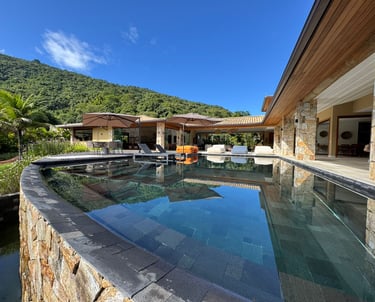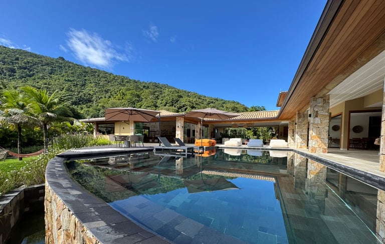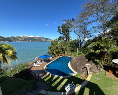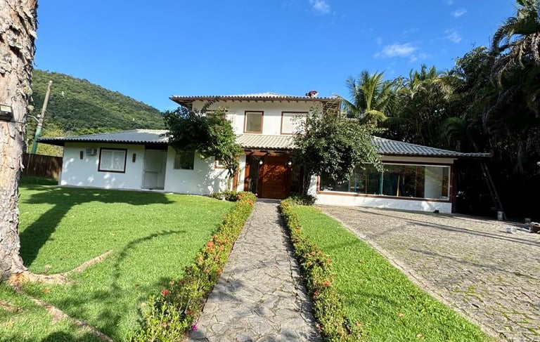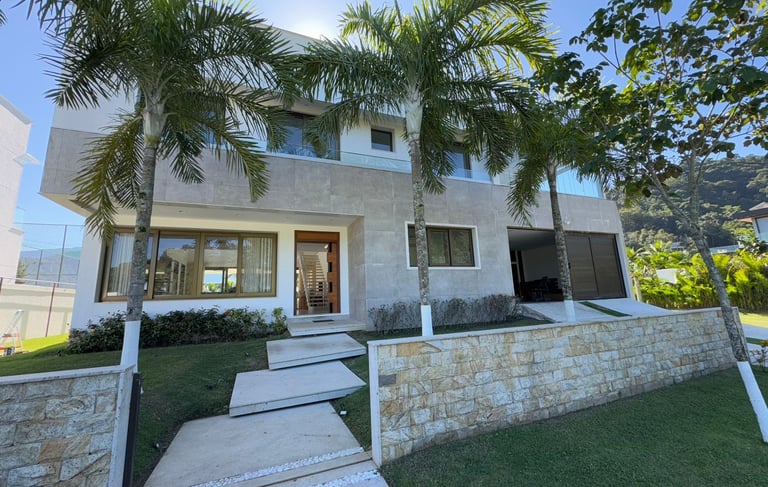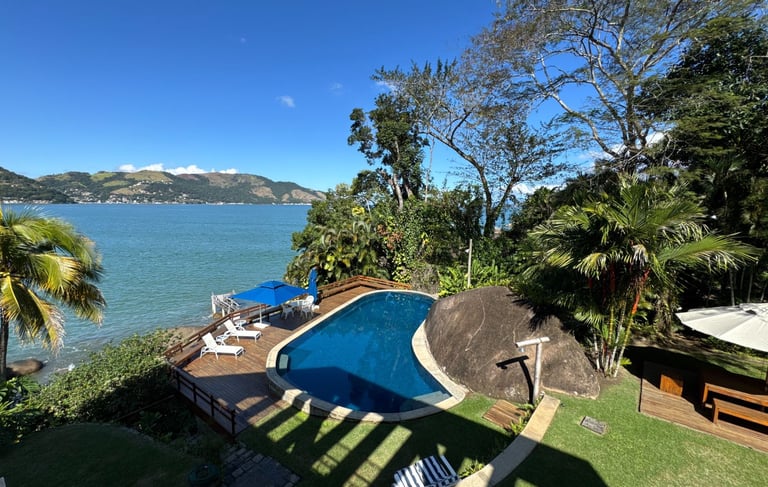 ✨Casa Duplex | 6 suítes | Terreno de 1900 m2 | Área construída de 400 m2 | 4 vagas de garagem | Sem acesso ao canal navegável | Dependência Completa | Sauna, Piscina e Jacuzzi | Adega de Vinhos | Academia | Vista para Enseada do Portogallo e Ilha Grande.